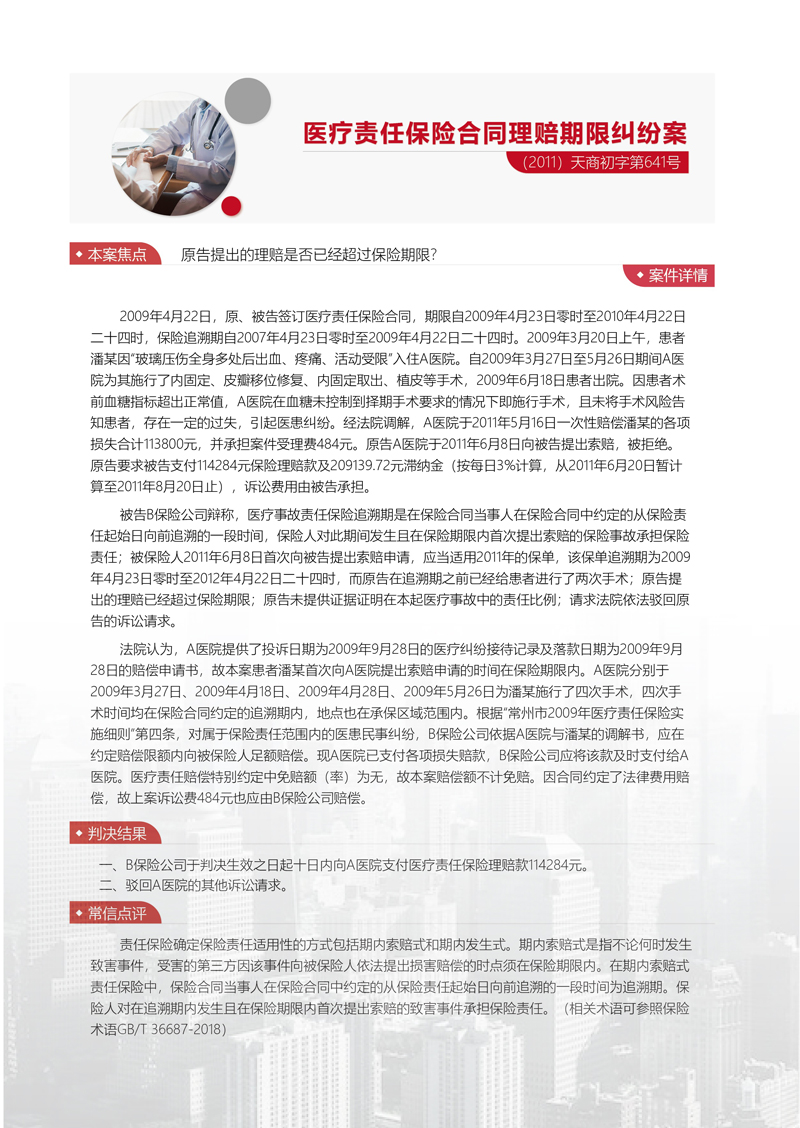 常信典型案例:醫(yī)療責(zé)任保險(xiǎn)合同理賠期限糾紛案